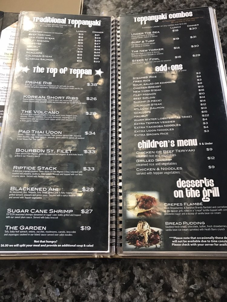Riptide Rockin’ Sushi & Teppan Grills offers a diverse menu with vegan and vegetarian options, outdoor seating, happy hour specials, and a full bar. Located in Mission Viejo, CA, this sushi bar is wheelchair accessible and ADA compliant, making it inclusive for all guests. The restaurant also provides various payment options, including cryptocurrency, and accepts Apple Pay and Venmo. With features like covered outdoor seating, drive-thru service, and even the option to bring your dog, Riptide Rockin’ Sushi & Teppan Grills caters to a wide range of preferences. The menu includes traditional sushi rolls, teppanyaki grilled dishes, and unique culinary creations that will leave your taste buds satisfied. Don't miss out on the opportunity to experience the vibrant atmosphere and delicious food at Riptide Rockin’ Sushi & Teppan Grills.